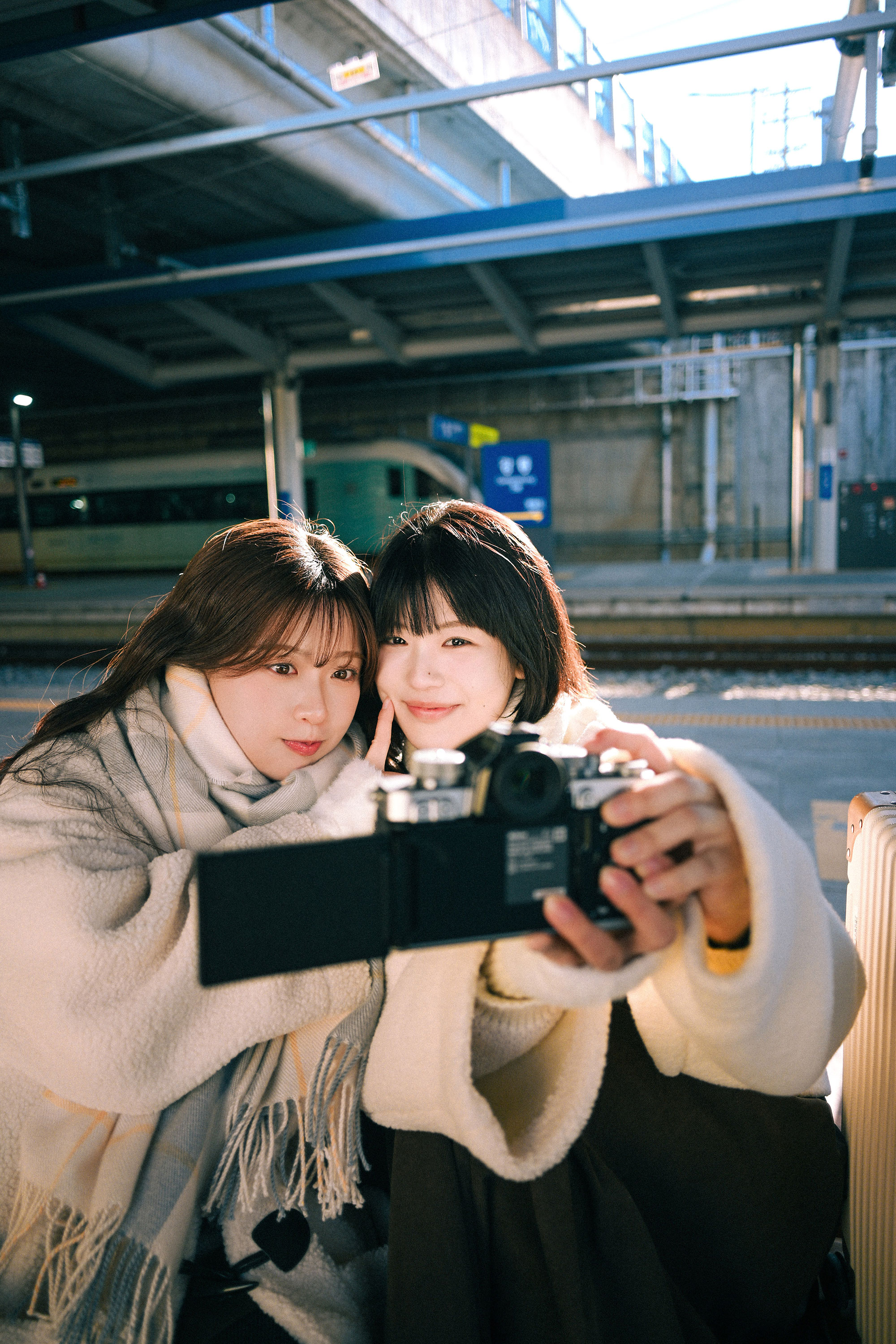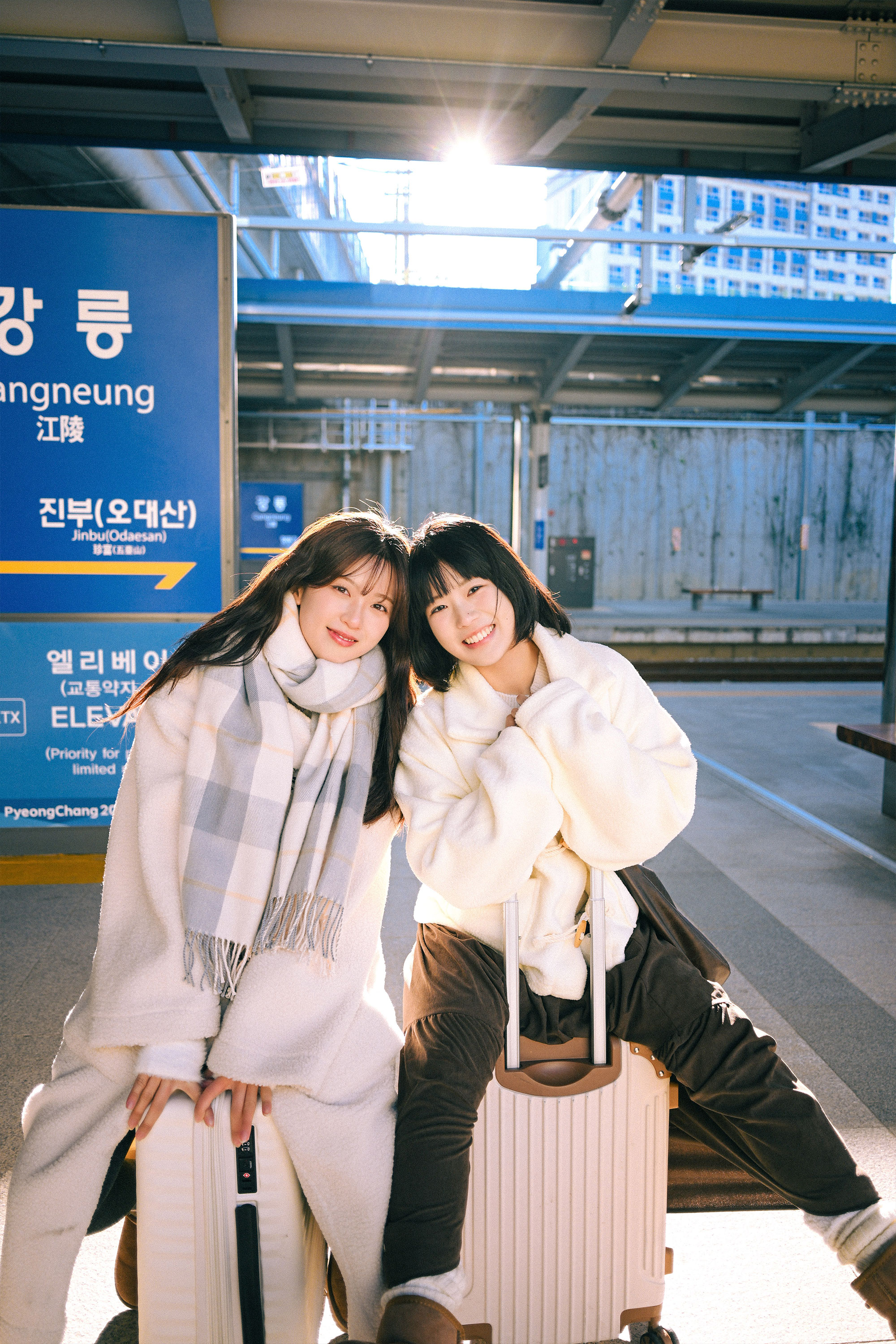 카메라와 캐리어를 소품으로 활용해 여행 느낌을 더욱 살렸습니다.