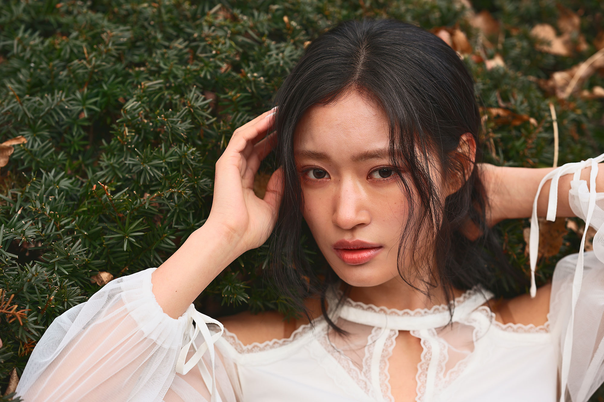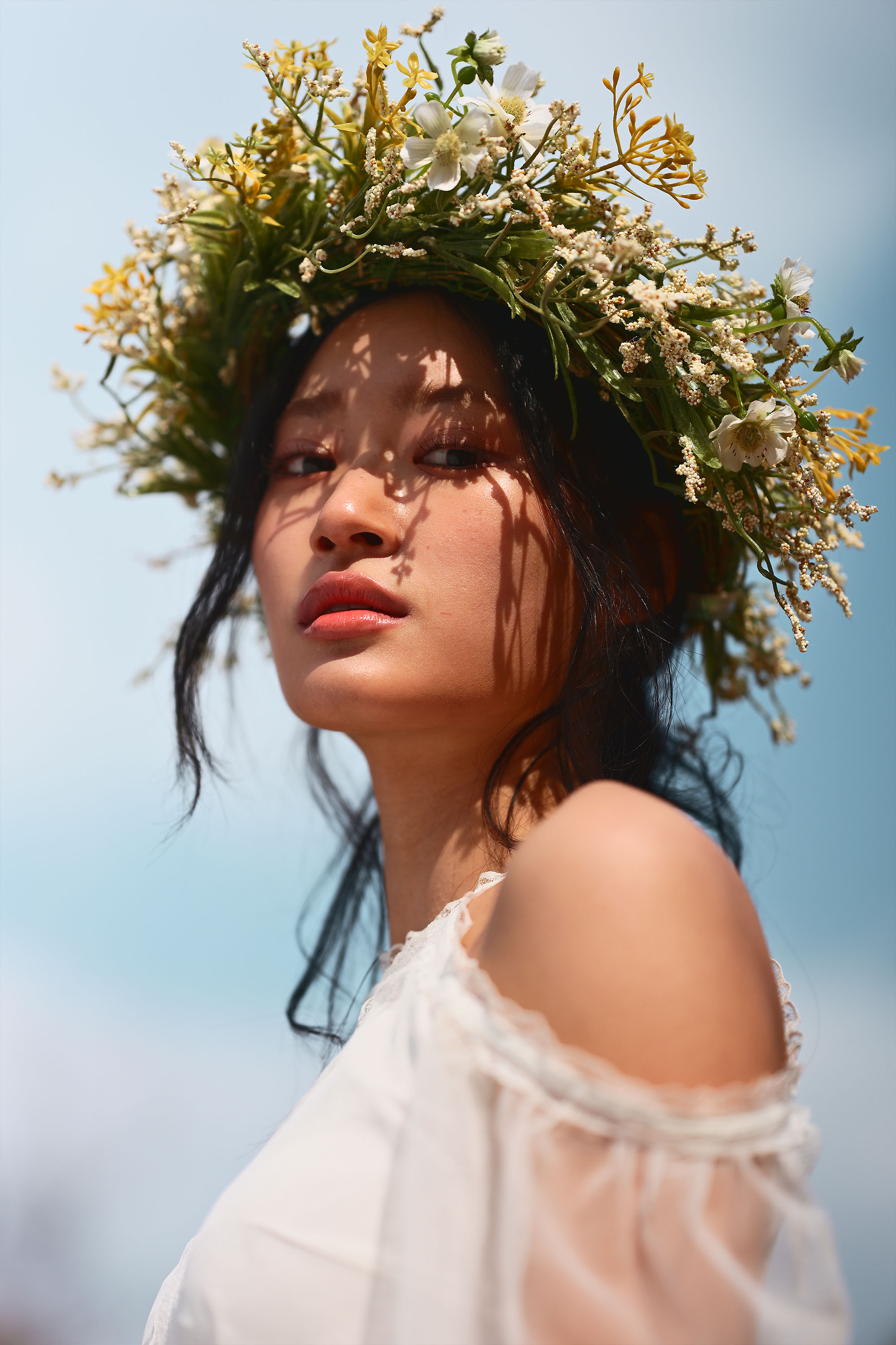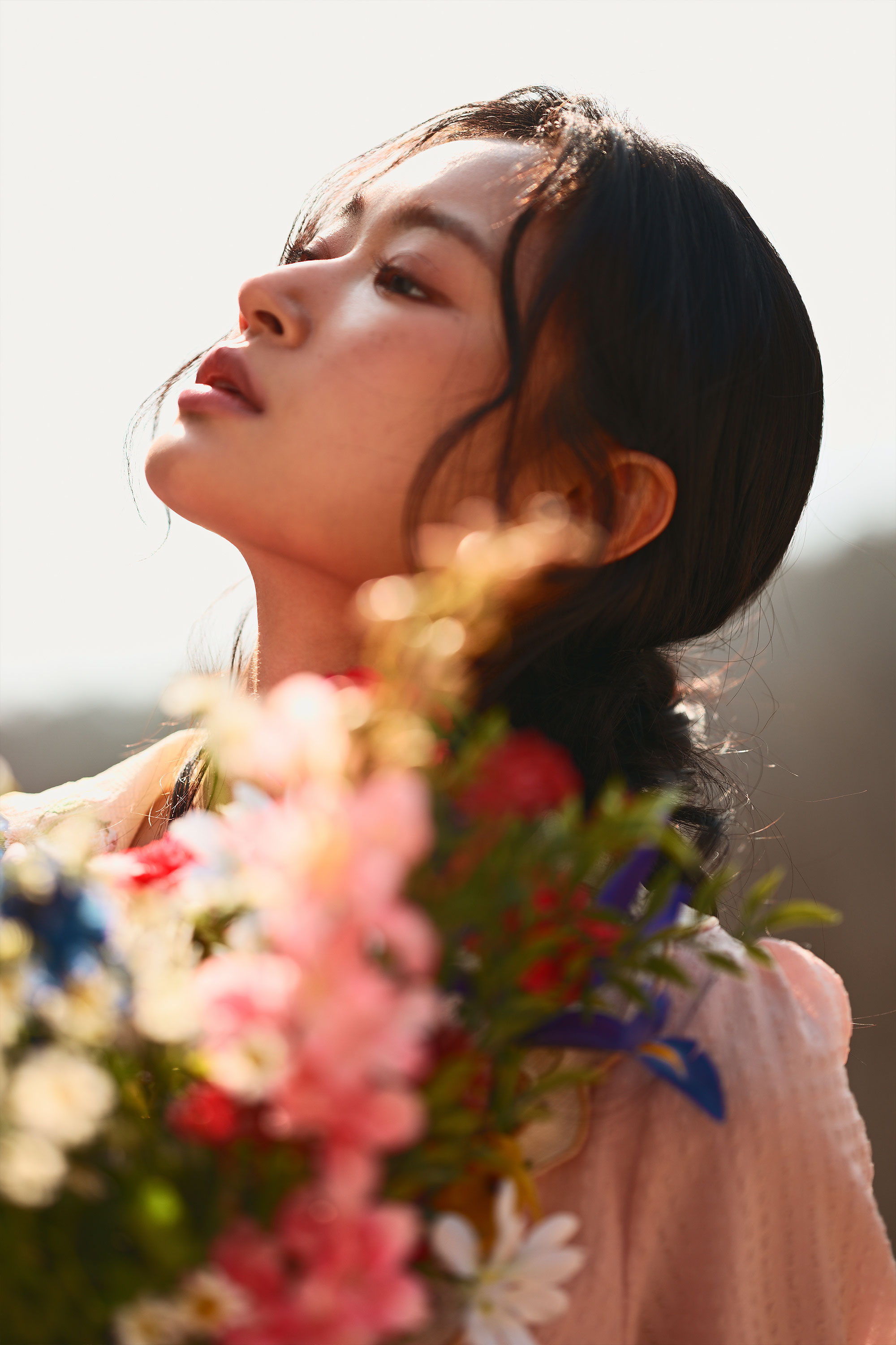 해가 모델의 뒤에서 머리 사이로 부서지며 내려앉는 구도 모두 사용하여 빛을 다양하게 활용했습니다.